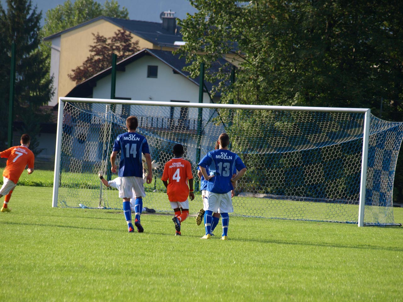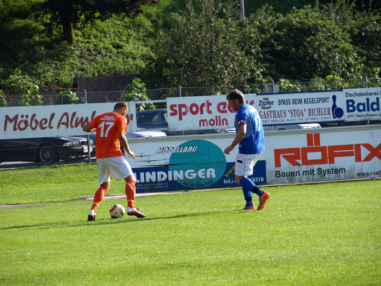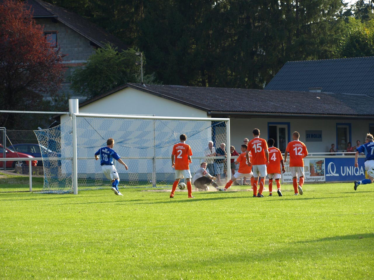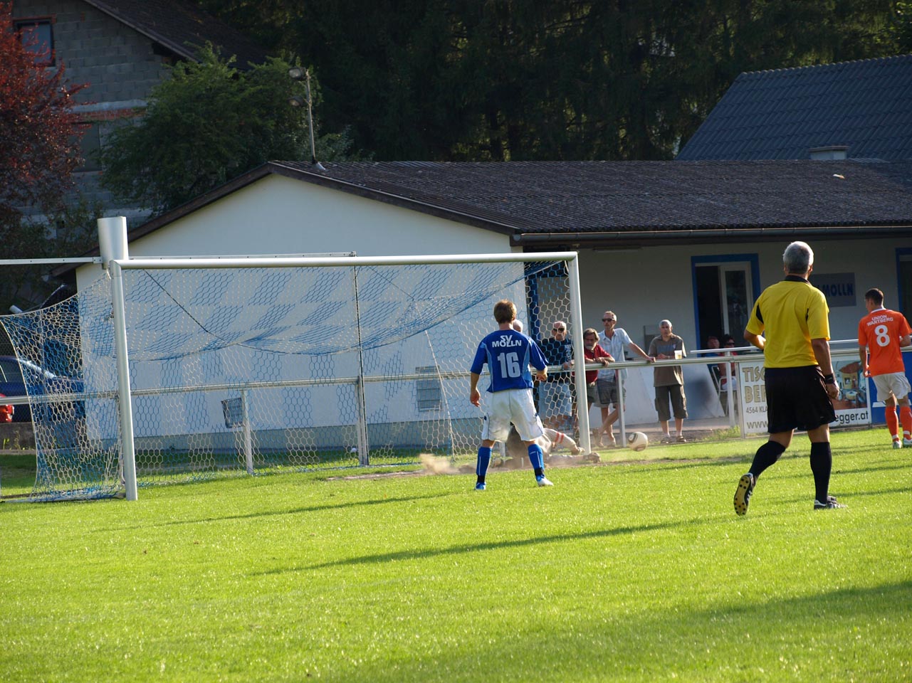Die Reserve Manschaft konnte gegen den letztjährigen Prügelknaben aus Wartberg/Krems den erwarteten Pflichsieg einfahren wobei sich die Gäste deutlich verbessert zeigten. Zur Überraschung aller sorgte Marco Müller mit einem schönen Treffer nach wenigen Minuten für die Wartberger Führung ehe die Heimischen dann in Fahrt kamen. Zunächst kamen die Mollner nach einem schweren Patze von Goalie Ali Ceylan durch Daniel Rinner zum Ausgleich ehe abermals Rinner per Flachschuss das 2:1 besorgte. Bei zwei Lattentreffern nach Freistößen von Thomas Gruber hatten die Gastgeber Pech so blieb es bei der knappen Pausenführung.