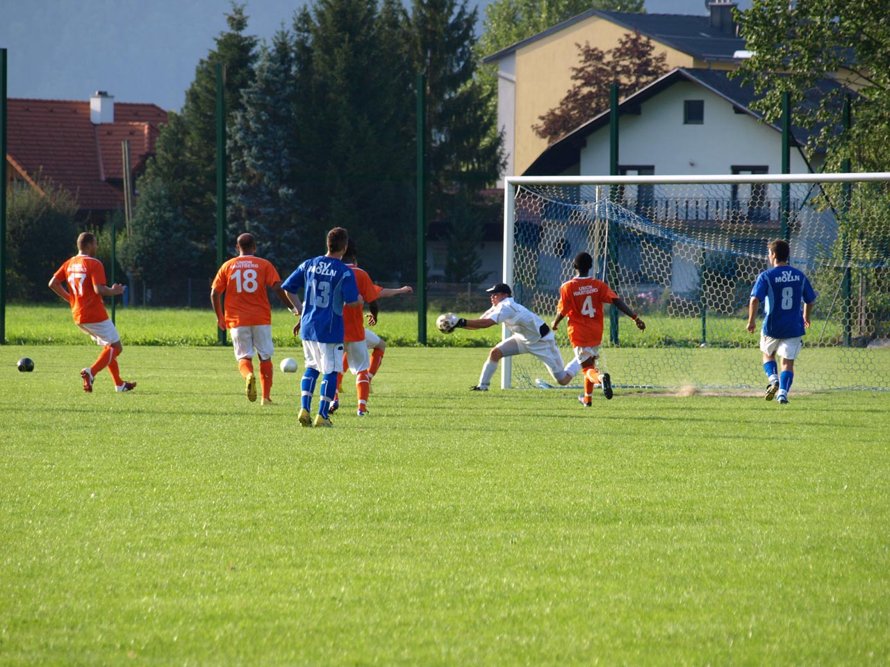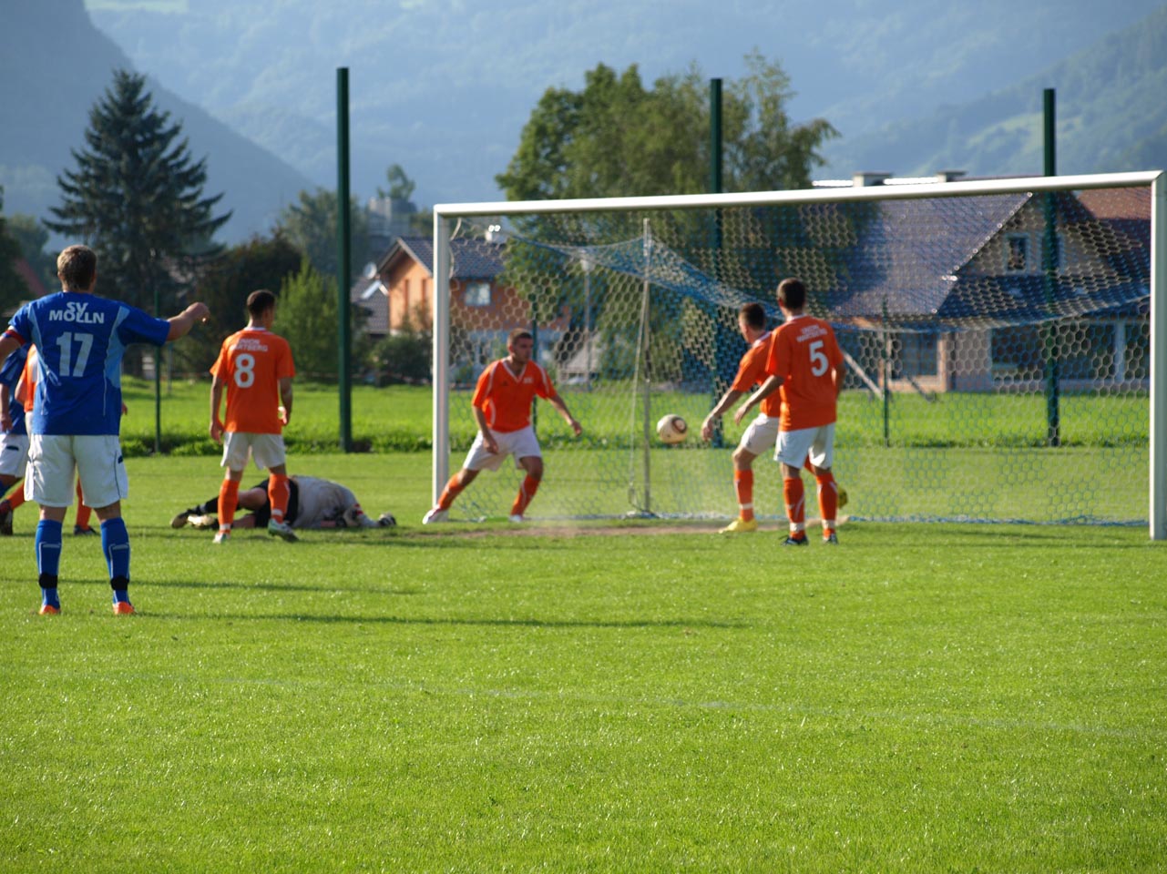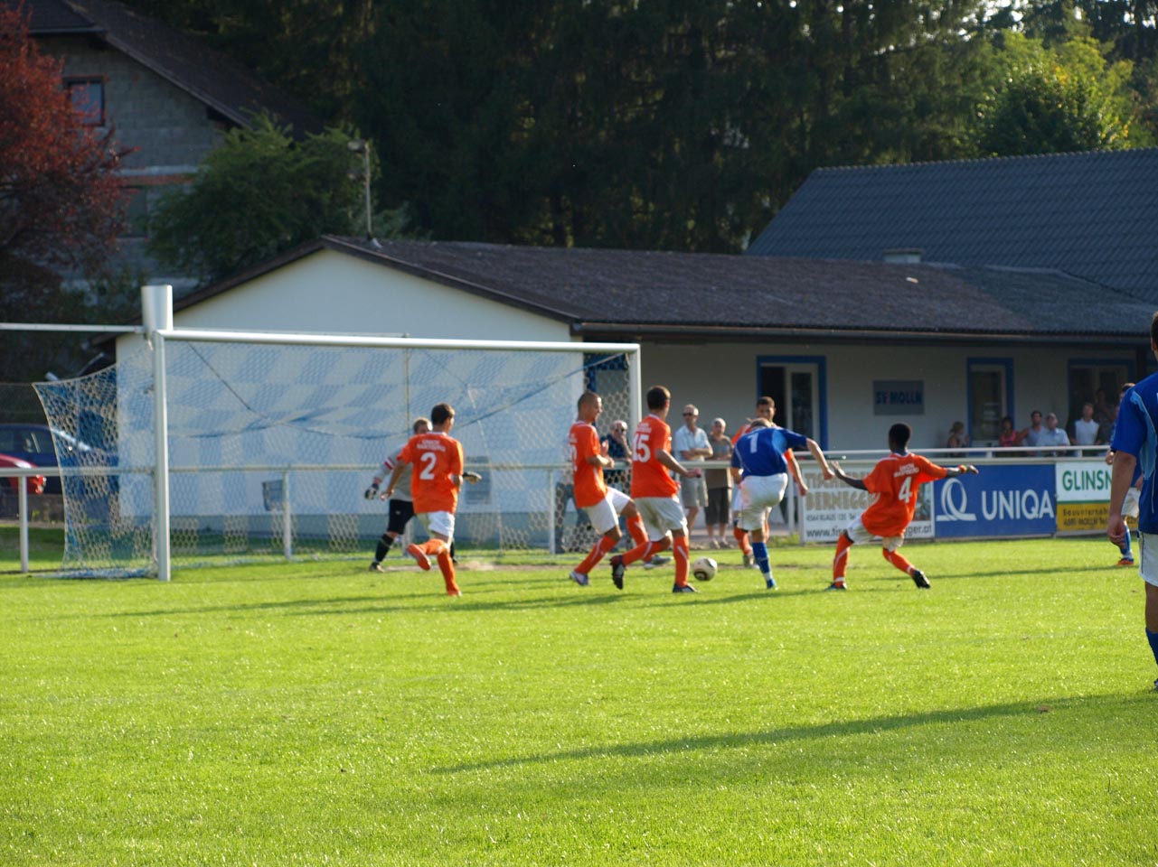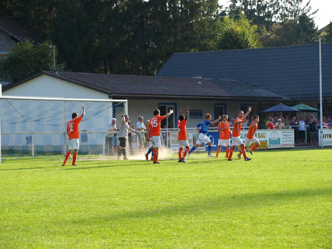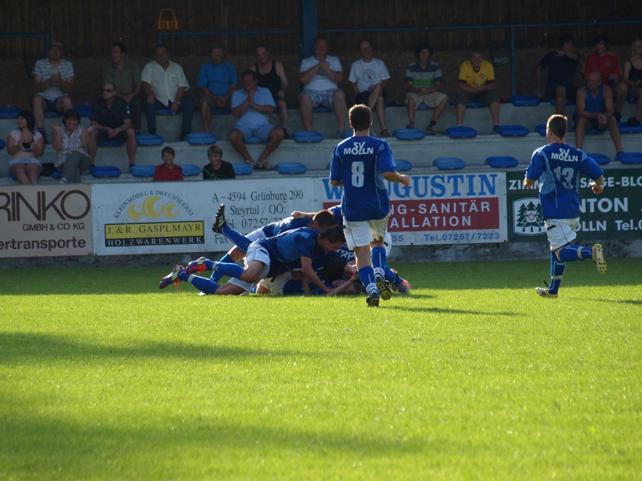 Die Reserve Manschaft konnte gegen den letztjährigen Prügelknaben aus Wartberg/Krems den erwarteten Pflichsieg einfahren wobei sich die Gäste deutlich verbessert zeigten. Zur Überraschung aller sorgte Marco Müller mit einem schönen Treffer nach wenigen Minuten für die Wartberger Führung ehe die Heimischen dann in Fahrt kamen. Zunächst kamen die Mollner nach einem schweren Patze von Goalie Ali Ceylan durch Daniel Rinner zum Ausgleich ehe abermals Rinner per Flachschuss das 2:1 besorgte. Bei zwei Lattentreffern nach Freistößen von Thomas Gruber hatten die Gastgeber Pech so blieb es bei der knappen Pausenführung.