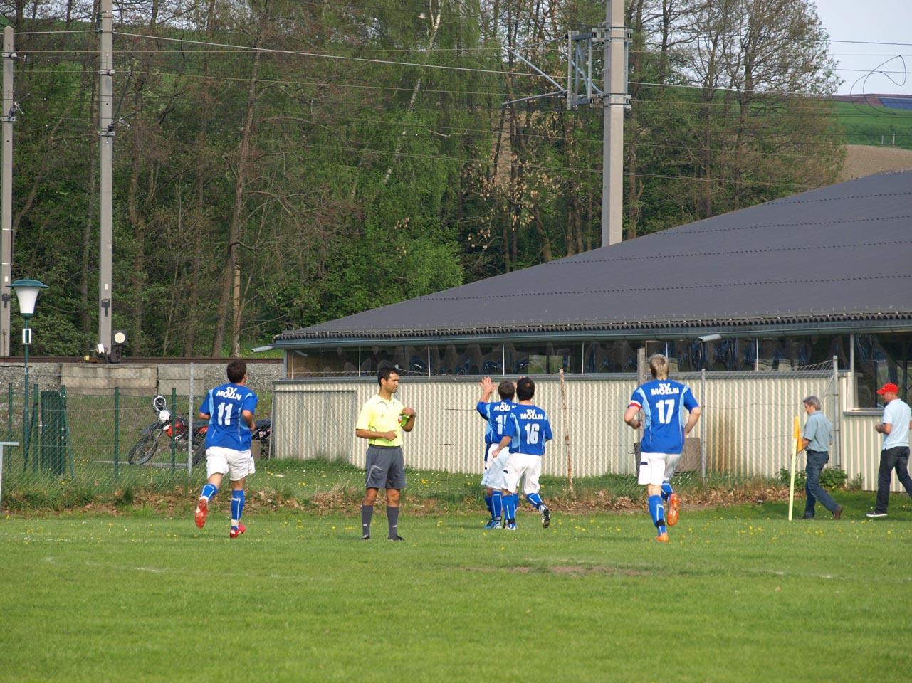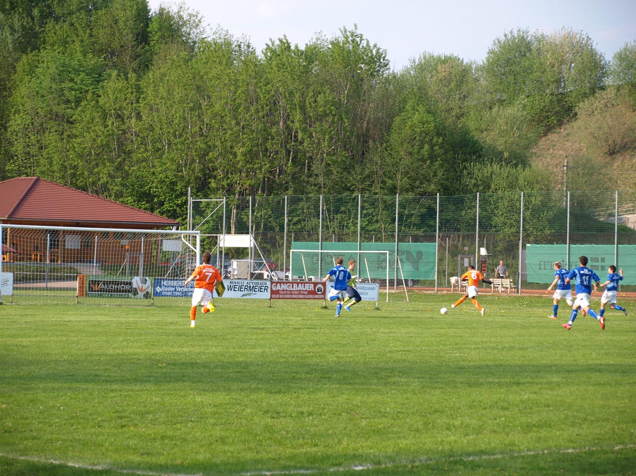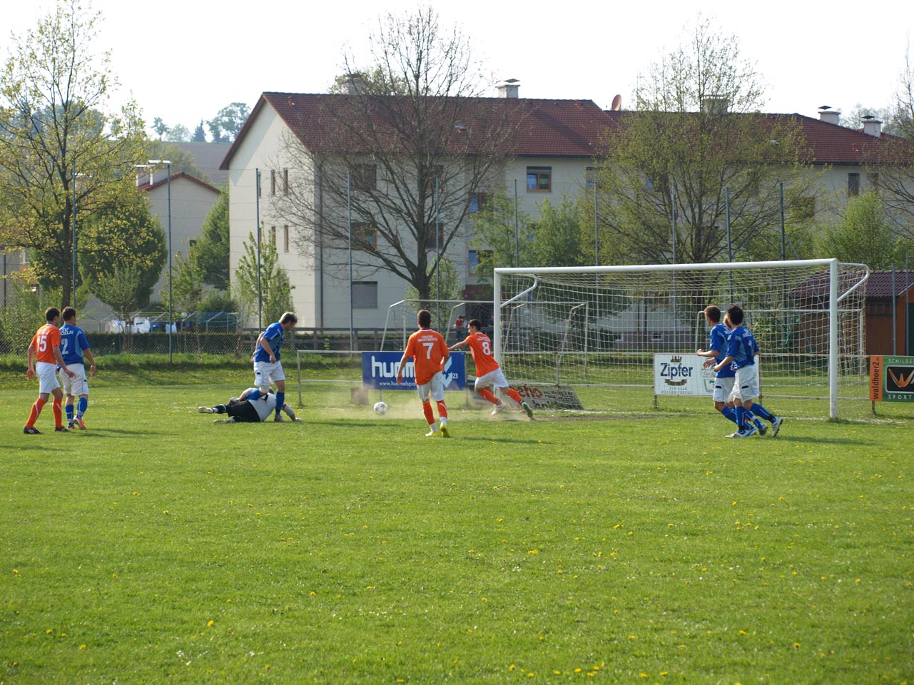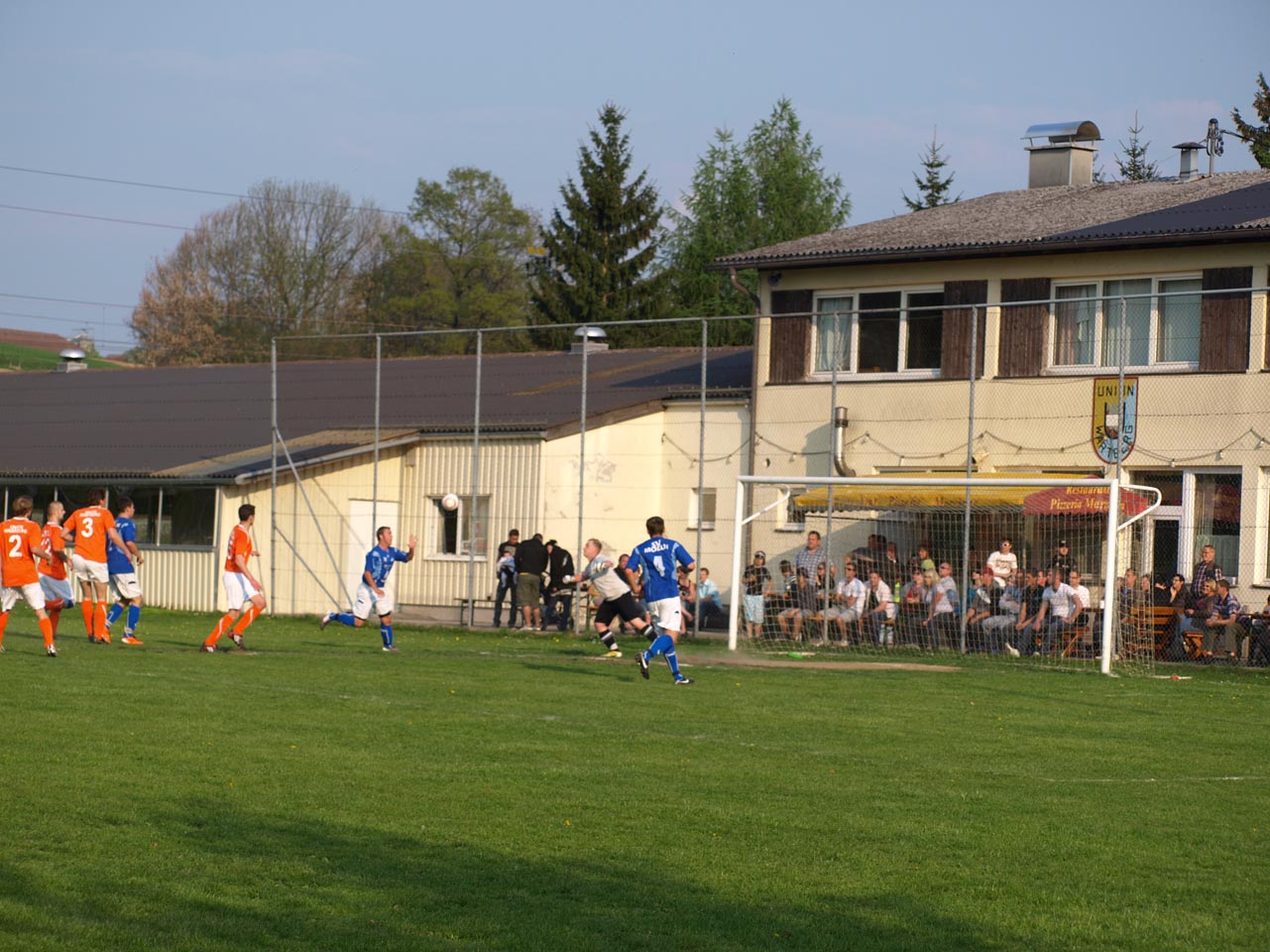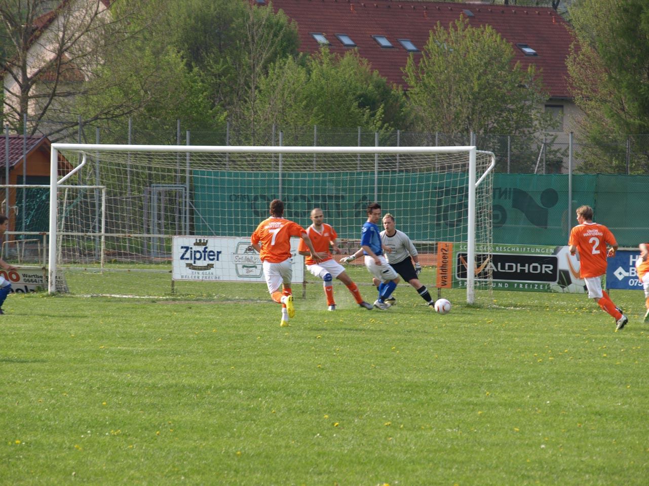 Die Mollner begannen sehr druckvoll und hatten kur nach dem Anpfiff die erste gute Möglichkeit auf die Führung. Martin Laglstorfer hatte die Kugel von der rechten Seite scharf zur Mitte gebracht doch Matthias Rinner konnte diese Vorlage aus guter Position nicht verwerten (2.). Wartberg konnte sich in der Anfangsphase überhaupt nicht befreien und war offensiv fast nicht vorhanden. Eine viertel Stunde war absolviert als Schiedsrichter Zeki nach einem Foul an Stefan Schmidthaler auf den Elfmeterpunkt zeigte - der gefoulte trat selbst an und verwertete sicher zum 1:0 für Molln. In weiterer Folge war das Spiel durch viele Zweikämpfe und Fouls geprägt, so wurden auch die Heimischen durch Standardsituation etwas gefährlicher. Ein direkter Freistoß sreifte die Oberkante der Querlatte, Molln Goalie Patrick Stickler wäre allerdings zur Stelle gewesen. Gegen Ende der ersten Halbzeit ereignete sich die kurioseste Szene der gesamten Partie, bei der der Unparteiische im Mittelpunkt stand. Nach einem hohen Ball in Richtung Mollner Strafraum starteten gleich drei Wartberger Angreifer aus Abseitsposition, welche der heimische Linienrichter auch korrekt anzeigte. Der Schiedsrichter blickte zu seinem Assistenten und ließ zur Verwunderung aller Beteiligten weiterlaufen - Miran Gavric beförderte das Leder anschließend zum vermeintlichen Ausgleich in die Maschen (34.). Aufgrund von zahlreichen Interventionen der Mollner Spieler hielt der Unparteiische schlussendlich doch noch Rücksprache mit dem Linienrichter und annulierte den Treffer folgerichtig. Kurz vor der Pause sorgte der aufgerückte Gerald Kimbacher nach einer Ecke noch einmal für Gefahr im Wartberger Strafraum, Keeper Dominik Gruber parierte seinen Kopfball jedoch sicher.