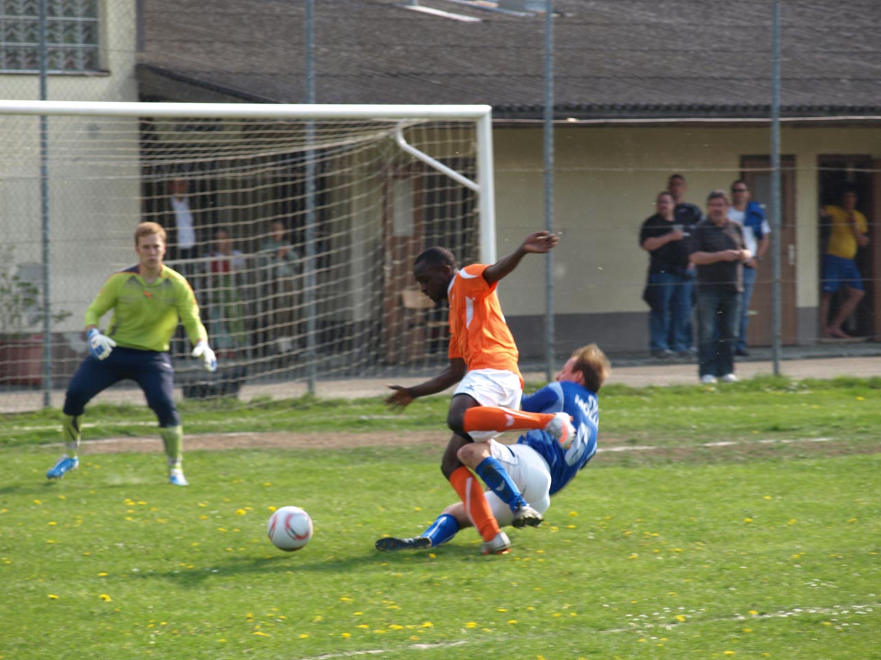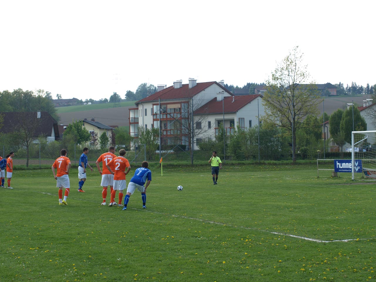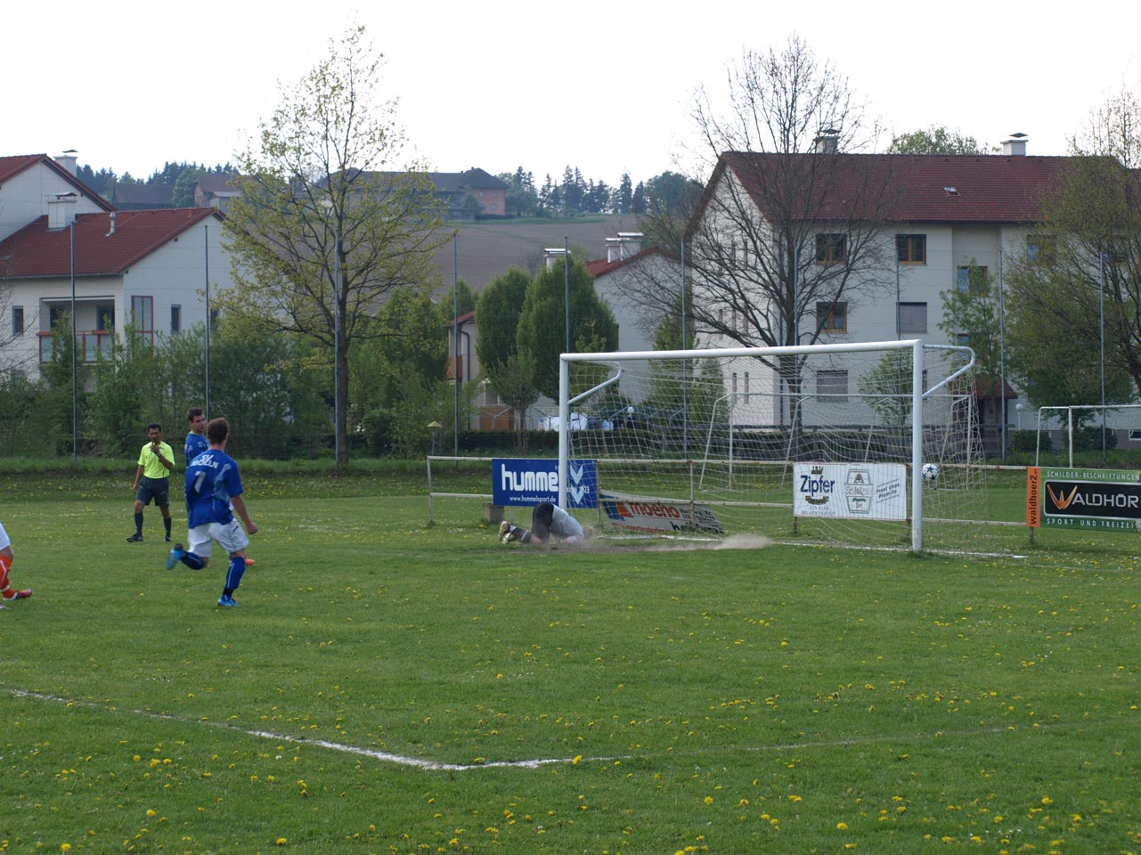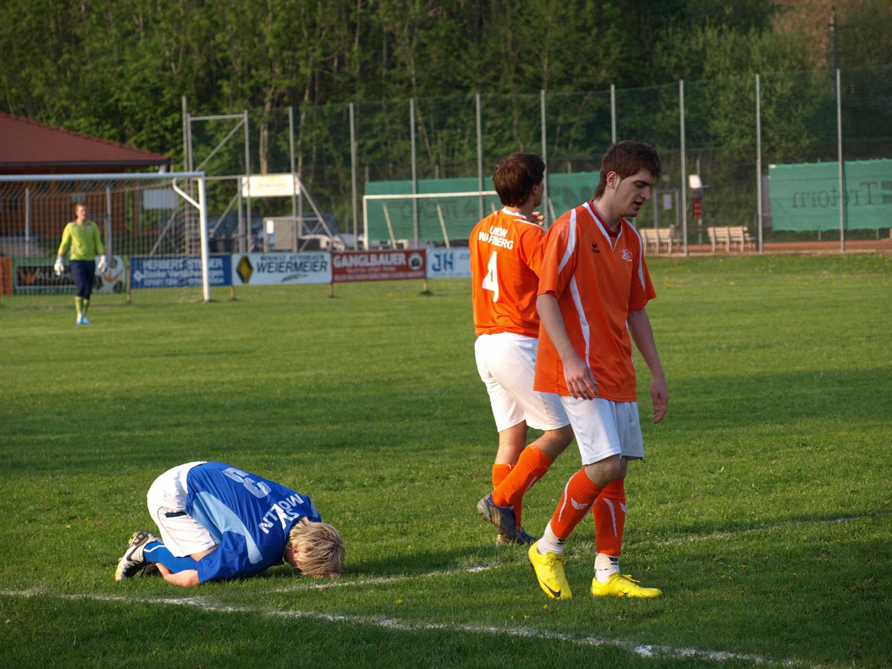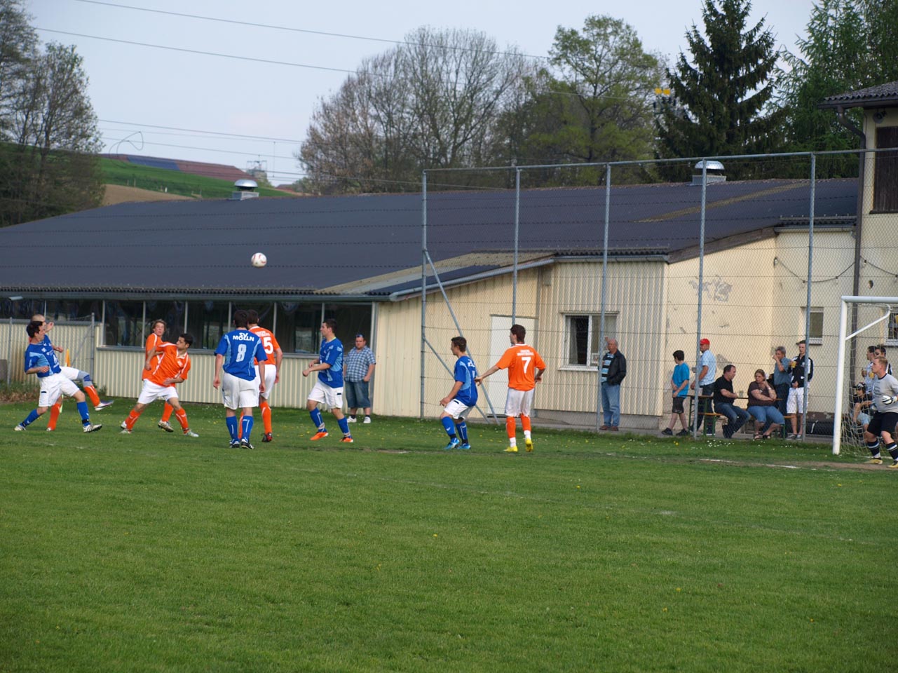 Die Mollner begannen sehr druckvoll und hatten kur nach dem Anpfiff die erste gute Möglichkeit auf die Führung. Martin Laglstorfer hatte die Kugel von der rechten Seite scharf zur Mitte gebracht doch Matthias Rinner konnte diese Vorlage aus guter Position nicht verwerten (2.). Wartberg konnte sich in der Anfangsphase überhaupt nicht befreien und war offensiv fast nicht vorhanden. Eine viertel Stunde war absolviert als Schiedsrichter Zeki nach einem Foul an Stefan Schmidthaler auf den Elfmeterpunkt zeigte - der gefoulte trat selbst an und verwertete sicher zum 1:0 für Molln. In weiterer Folge war das Spiel durch viele Zweikämpfe und Fouls geprägt, so wurden auch die Heimischen durch Standardsituation etwas gefährlicher. Ein direkter Freistoß sreifte die Oberkante der Querlatte, Molln Goalie Patrick Stickler wäre allerdings zur Stelle gewesen. Gegen Ende der ersten Halbzeit ereignete sich die kurioseste Szene der gesamten Partie, bei der der Unparteiische im Mittelpunkt stand. Nach einem hohen Ball in Richtung Mollner Strafraum starteten gleich drei Wartberger Angreifer aus Abseitsposition, welche der heimische Linienrichter auch korrekt anzeigte. Der Schiedsrichter blickte zu seinem Assistenten und ließ zur Verwunderung aller Beteiligten weiterlaufen - Miran Gavric beförderte das Leder anschließend zum vermeintlichen Ausgleich in die Maschen (34.). Aufgrund von zahlreichen Interventionen der Mollner Spieler hielt der Unparteiische schlussendlich doch noch Rücksprache mit dem Linienrichter und annulierte den Treffer folgerichtig. Kurz vor der Pause sorgte der aufgerückte Gerald Kimbacher nach einer Ecke noch einmal für Gefahr im Wartberger Strafraum, Keeper Dominik Gruber parierte seinen Kopfball jedoch sicher.